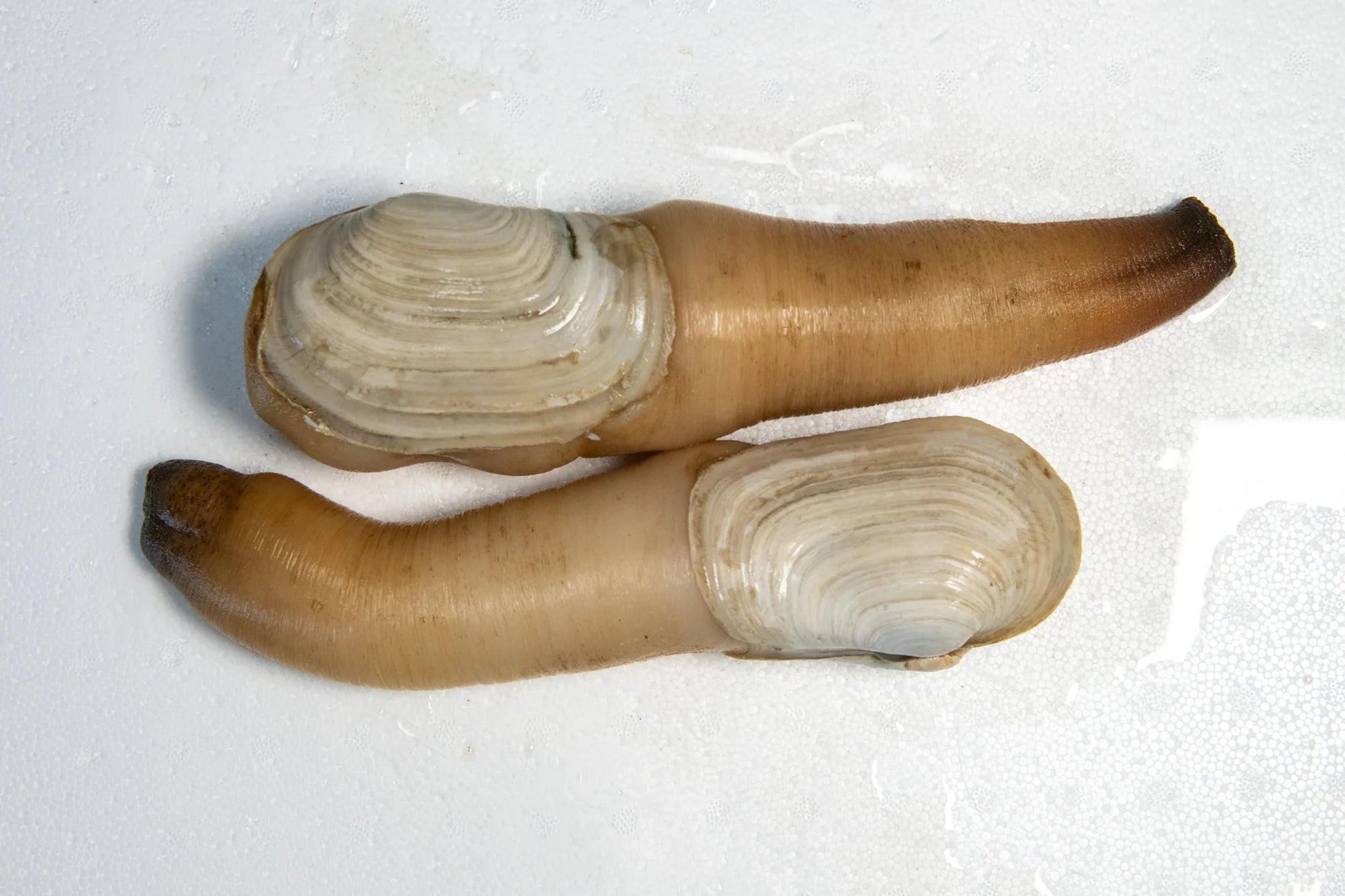 A Pacific Northwest delicacy, our geoduck are harvested sustainably by local providers. Sold live and by the piece, each geoduck typically weighs between 0.8 and 1.2 lb.